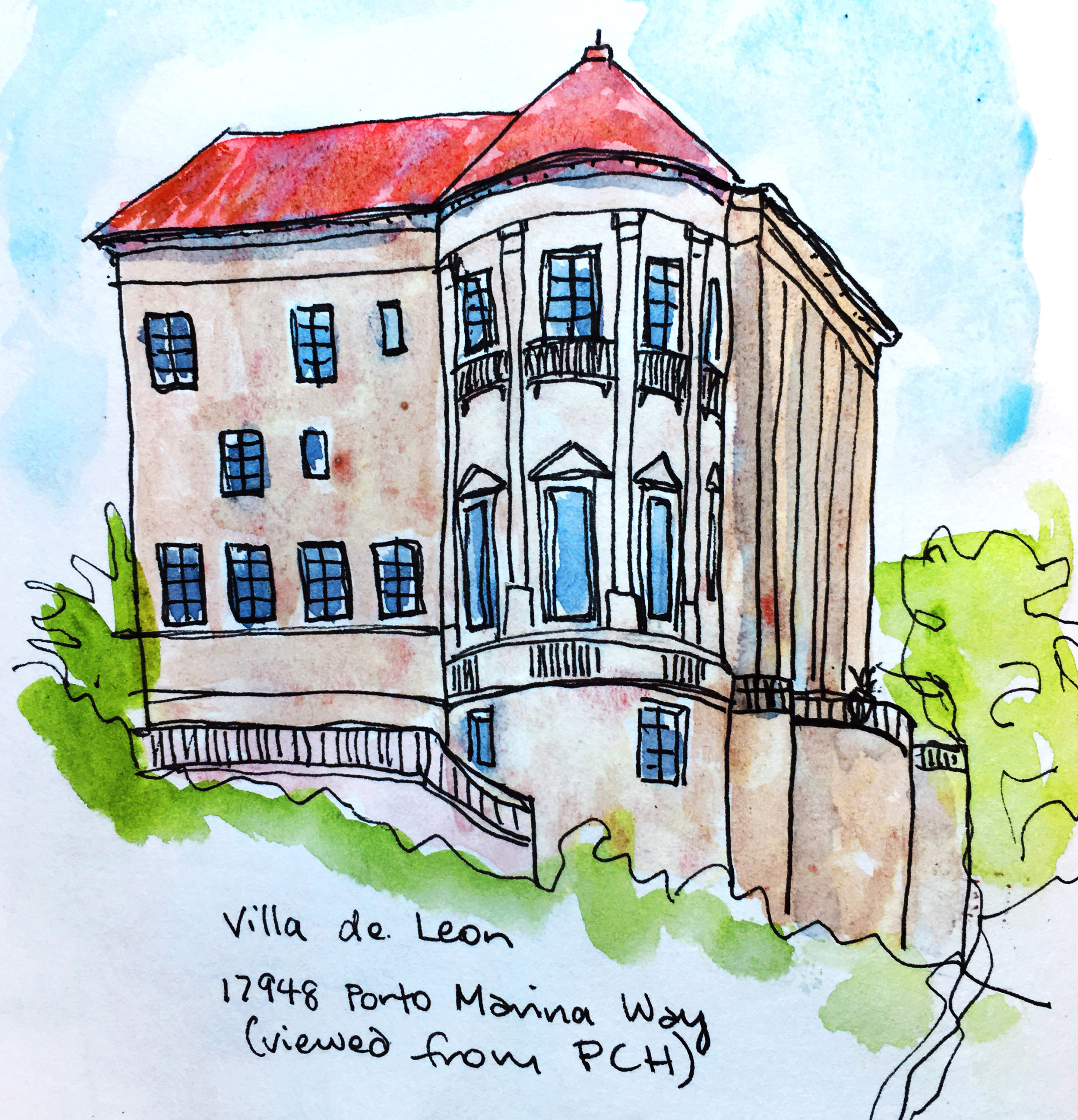 To make the wand work, Deacon said that he had to wear the shoe of one of the lost girls on his left foot. Lieutenant Fore swore that when Deacon put the shoe on, the wand “quivered and strained in the inventor’s hands as on a leash.” After three hours of wandering around the beach, the group ended up at the half-finished mansion that Austrian businessman Leon Kauffman (1873-1935) was building for his wife Clemence (1886-1932) to fulfill her dream of having a castle by the sea. The Villa de Leon remains a coastal landmark, towering above the entrance to the Getty Villa.
