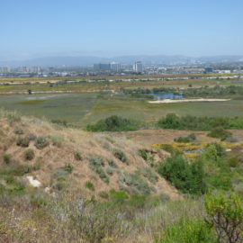 Much of the Ballona Reserve was filled in with soil excavated during the construction of the marina in the 1960s. Roads and oil industry pipelines criss-cross the open space. Ballona Creek flows to the sea confined to a 20-foot-deep concrete canal.