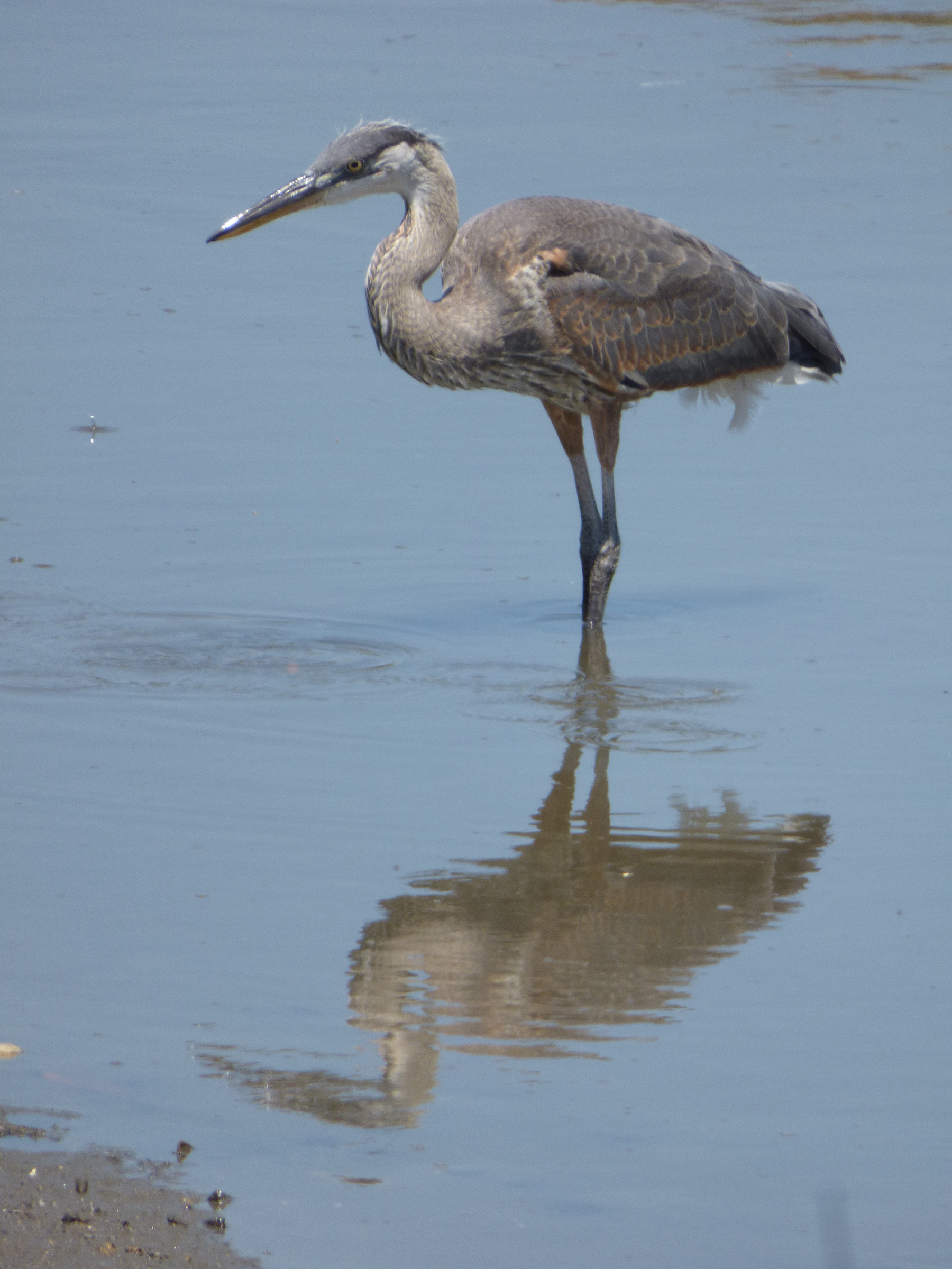 Despite decades of environmental degradation, this isn’t a bleak industrial wasteland.  Invasive species like mustard and crown daisies may have replaced cattails and reeds, but the open space is home to many species of birds and animals, including the increasingly rare burrowing owl, great blue herons and snowy egrets, the federally listed least tern, and the tiny Belding’s Savannah sparrow, a California species of special concern.