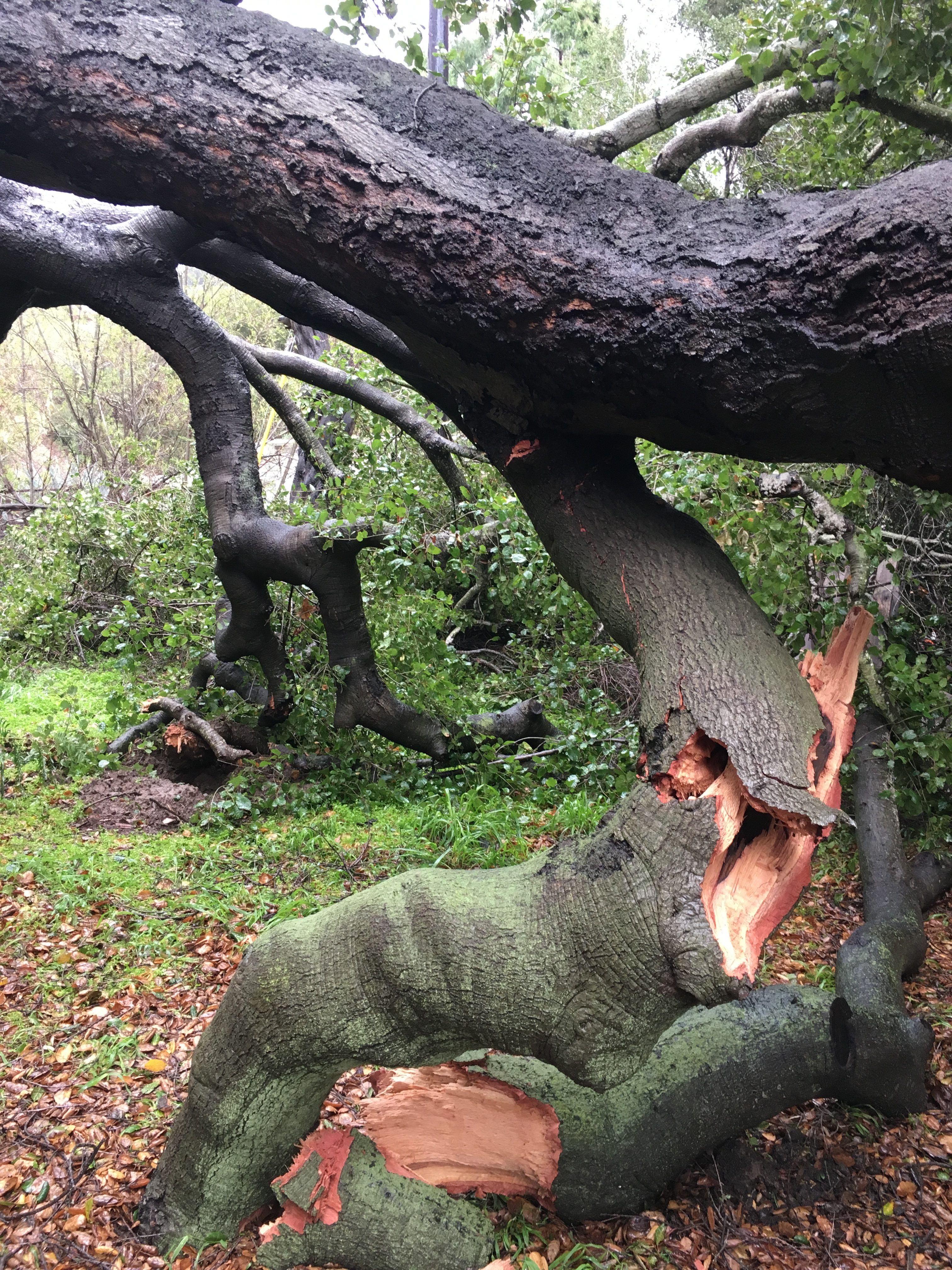 As the Jensen oak tree fell, this branch was shattered from the weight of the tree.
