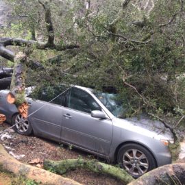 and made short work of a 300 year old oak tree that fell during the storm. Photo by Homeowner