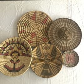 Immediately evident to the viewer is the extraordinary range of artistic expression contained within objects made by American Indians from early times to the present. Historically, Indian peoples lived in various environments, sometimes sedentary and sometimes nomadic, utilizing materials available in their homelands to address specific life needs. This led to artistic conventions and expressions characteristic and attributable to specific peoples. For example, the baskets of Hopi people living on Second Mesa are coiled, with wefts coiled around bundled foundations, while Hopi plaques from Third Mesa are of a wickerwork technology.