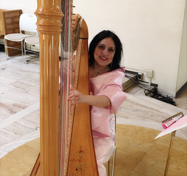 When she isn’t playing the harp, Scheherazade Alexis Aria, known as Lexi to her many friends, works as a community organizer for the Democratic Party, including running the phone banks in Topanga…