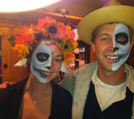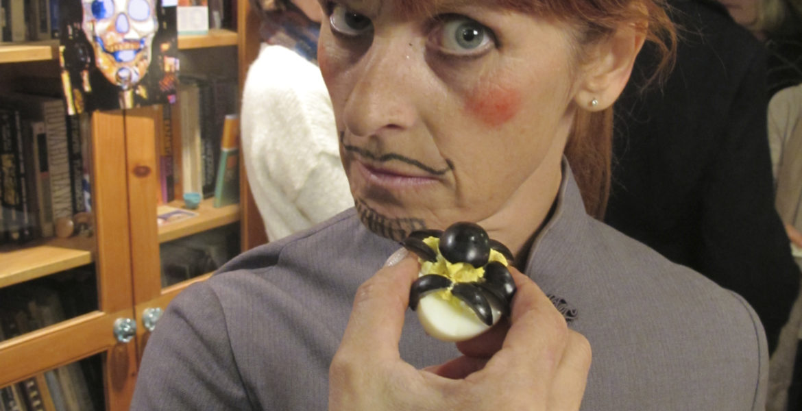 Artist Robin Becker and her husband, James Chressanthis, a cinematographer, have hosted a potluck for nine years with chili and corn bread. “I end up with a big house full of people who take turns handing out the candy,” said Becker whose children are now grown up, but she still enjoys the event. “Some parents drop off candy ahead of time on the day. We need that.”
