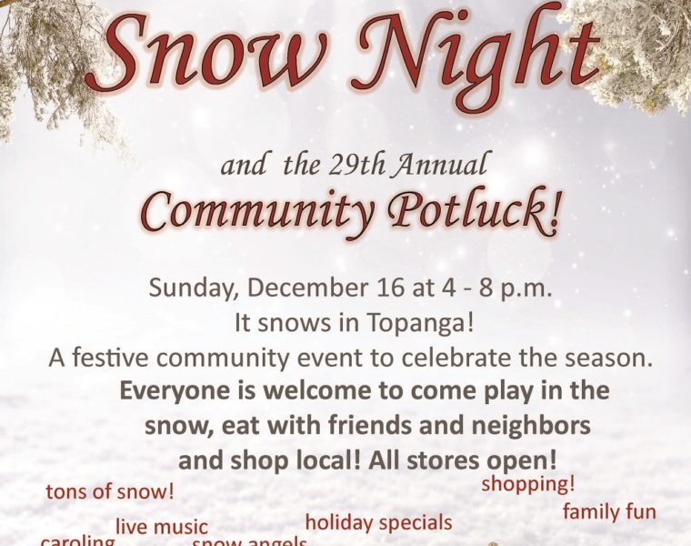 Snow Night and community potluck will magically appear at Pine Tree Circle on Sunday, December 16, from 5-8 p.m., along with Santa and Mrs. Claus. Following Steve and Leslie Carlson’s tradition, the…