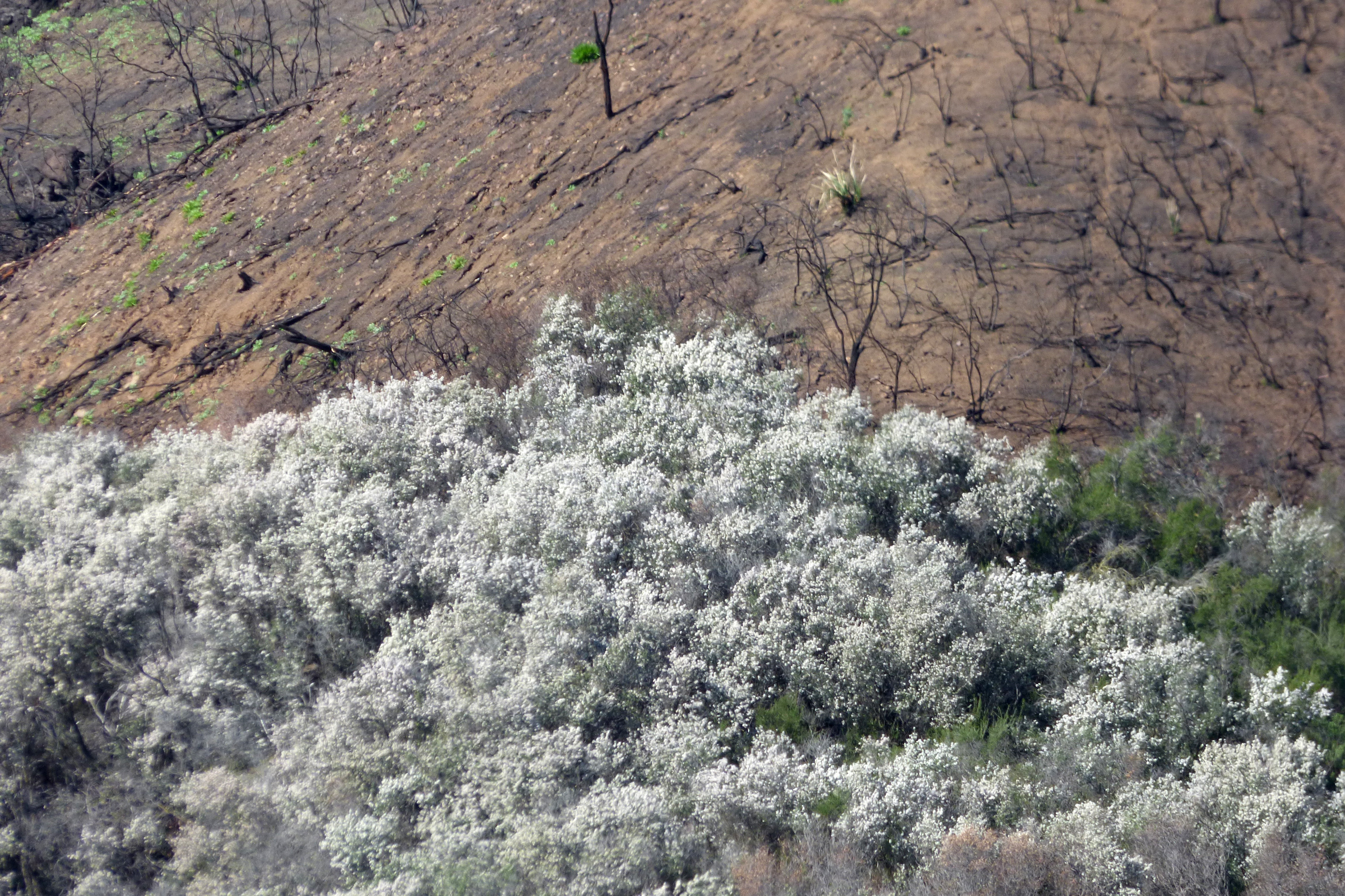 While the mountains heal, Topanga’s unburned chaparral is an oasis for species that depend on ceanothus for survival, and the beauty of the snow-like flowers is one of the joys of winter in the canyon.