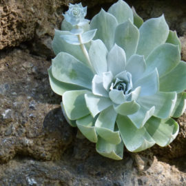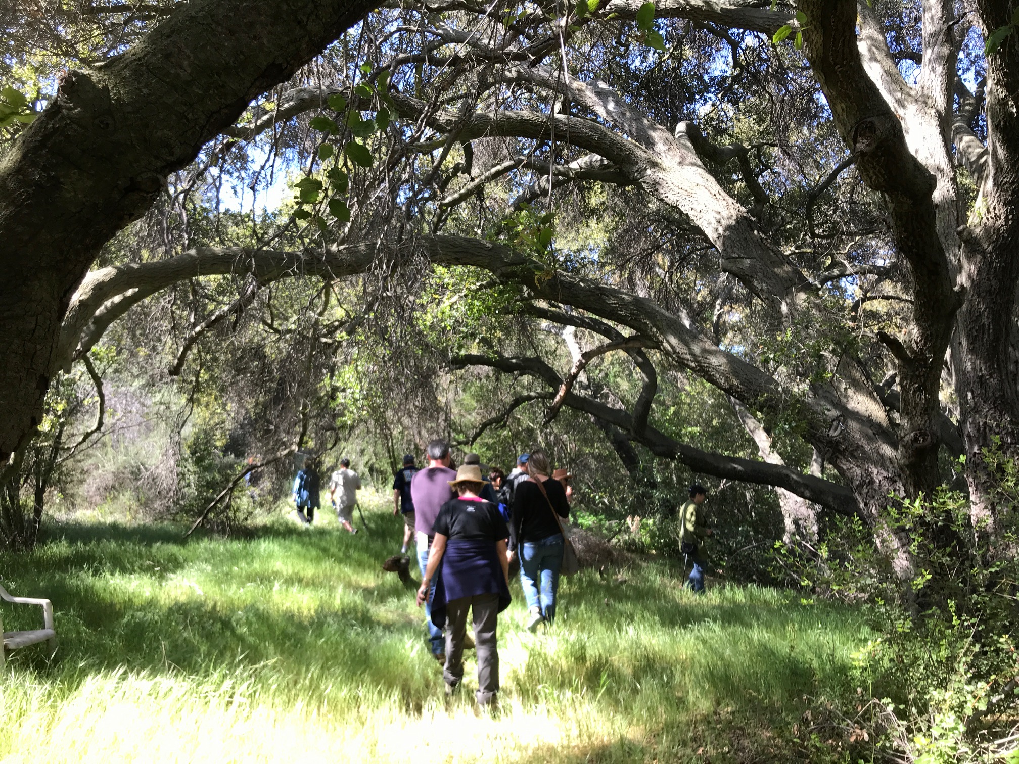 The bridge led us upstream to the last of our historic stops, the Heritage Grapevine. As we meandered through dry open spaces inhabited by prickly chia flowers, goldfield, and yucca, downward to the stream, one of our party hoped aloud that we would find a rare stream orchid.