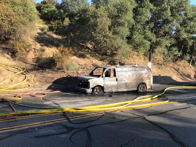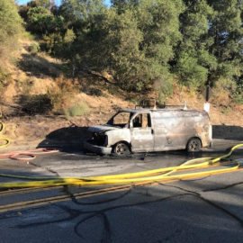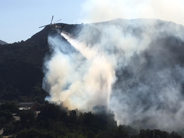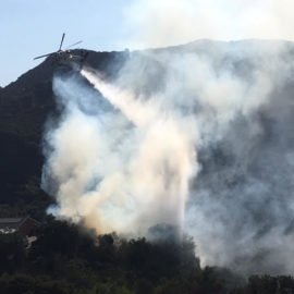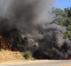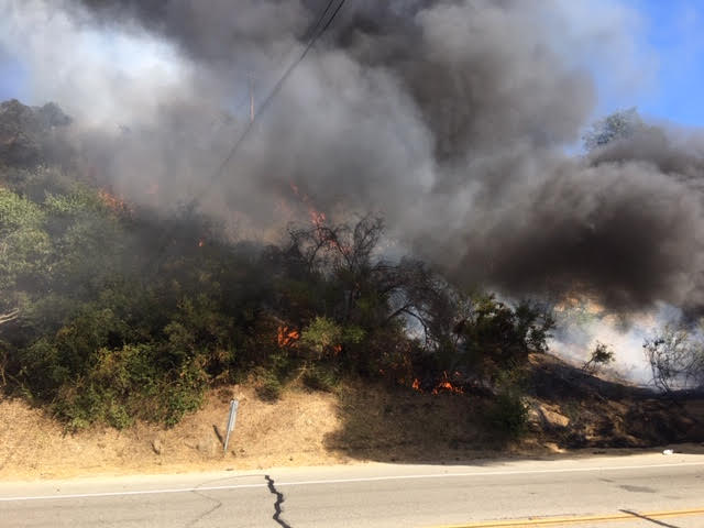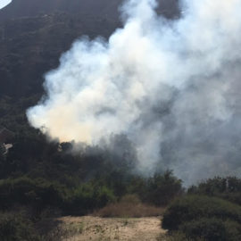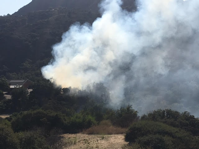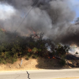 The Cheney Fire, caused by a vehicle fire, charges uphill towards the Topanga Community Center. Photos by James Grasso