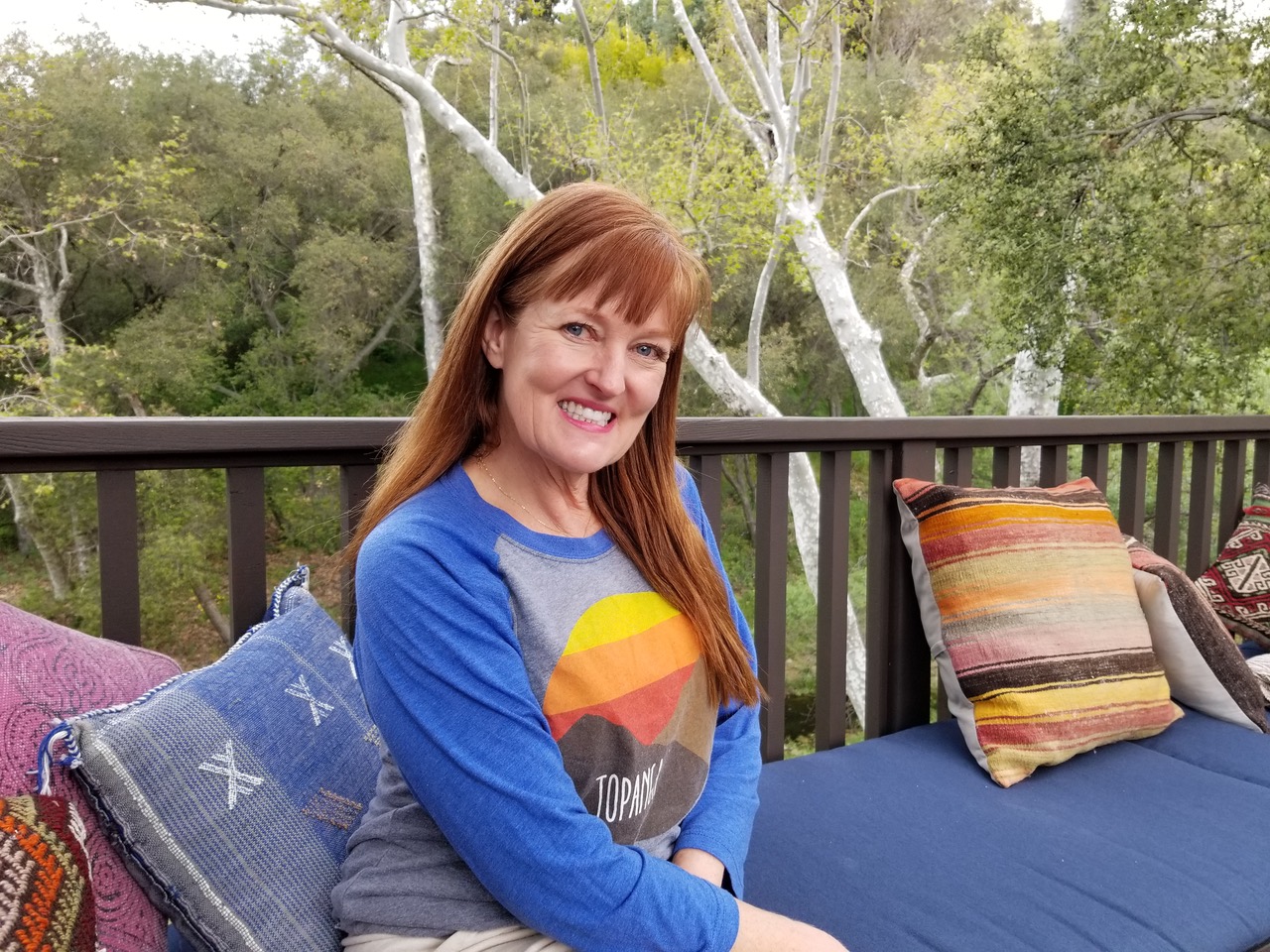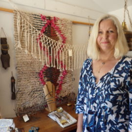 Designer Monica Zaidman on back patio of her shop. Photos by Annemarie Donkin