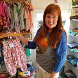 Inside, an abundance of cuteness overwhelms the senses—shelves of colorful girls’ and boys’ clothes, soft baby things, colorful hats, toys, and adorable gift items everywhere.