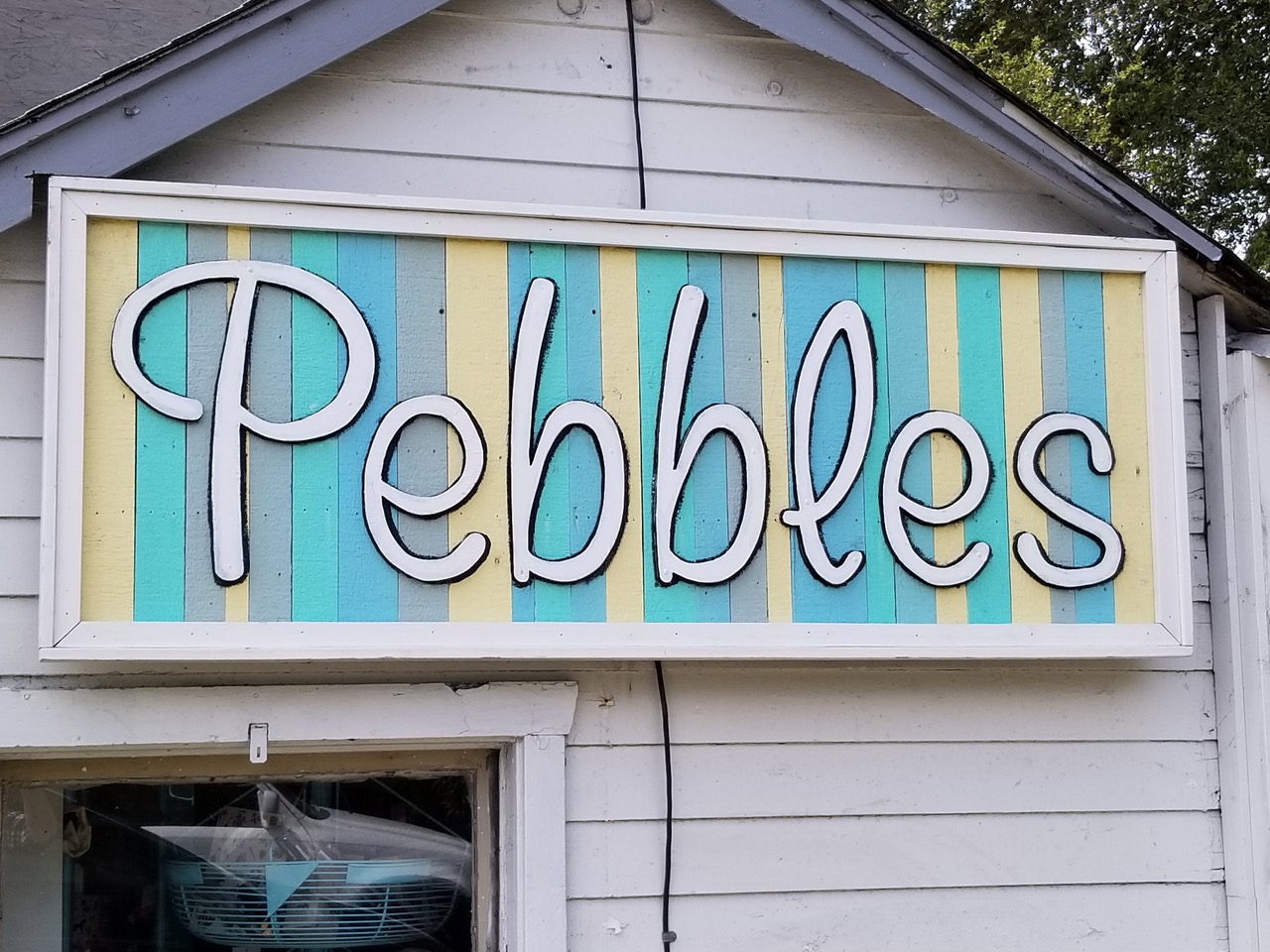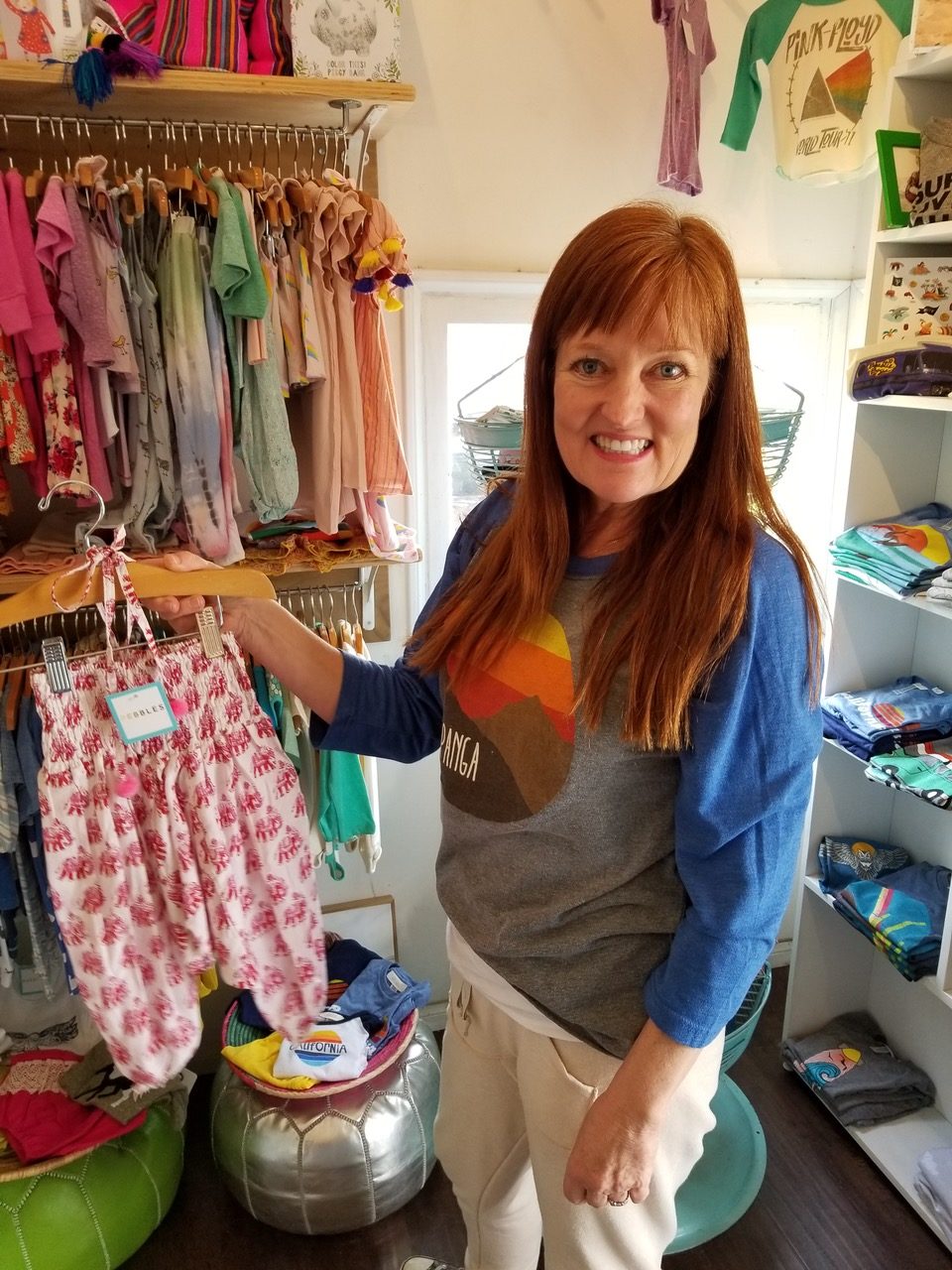 From the road one can easily see the bright rows of colorful women’s tops and frilly girls’ dresses fluttering in the breeze outside of Pebbles, the charming blue-and-pink-striped shop, where there is always a colorful child-size teepee on display.