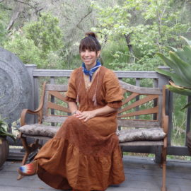 Monica and her husband, Zachary Zaidman, moved to Topanga eight years ago from Brooklyn, where she had worked as a fashion designer and created a small clothing line by hand. Six years ago, she had her daughter, Sol Luna, who now attends Topanga Elementary. Once fully settled into the Canyon, Monica longed for another way to sell her wares.