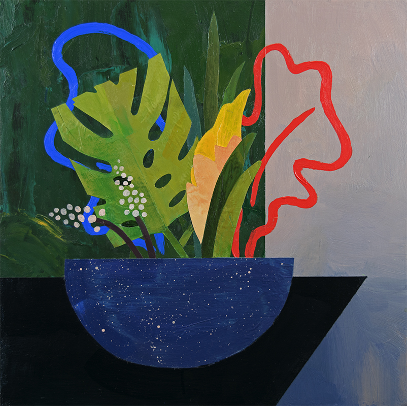 Using plants as a metaphor, Moises Mendoza asks, “Does Nurturing Matter?” His brilliant collages made from his own painted works, represent the precariousness of life and the ability of nurturing to provide support for growth and the ability to flourish.