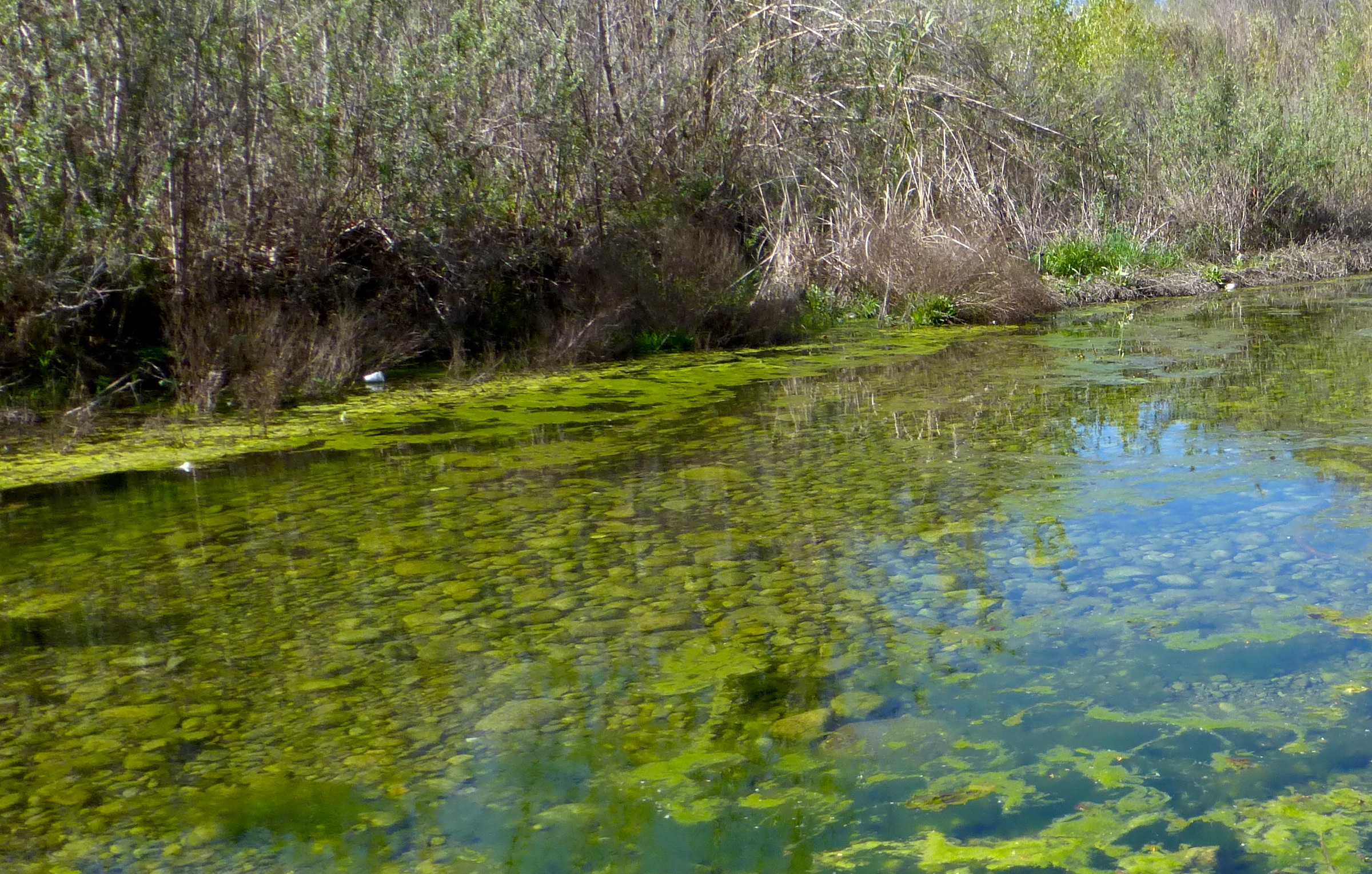 Algae. There is no real way to know just by looking if this bright green algae is toxic blue green algae, or any of a number of other HABs—harmful algae bloom—but after learning about the potential hazards of microbial contaminants like cyanobacteria, we weren’t taking any chances.