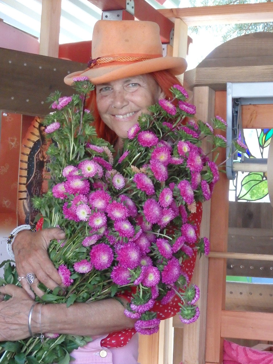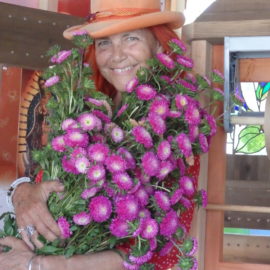 Gidget Zapata with her arms full of the fresh flowers she loves and that have made her the