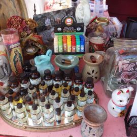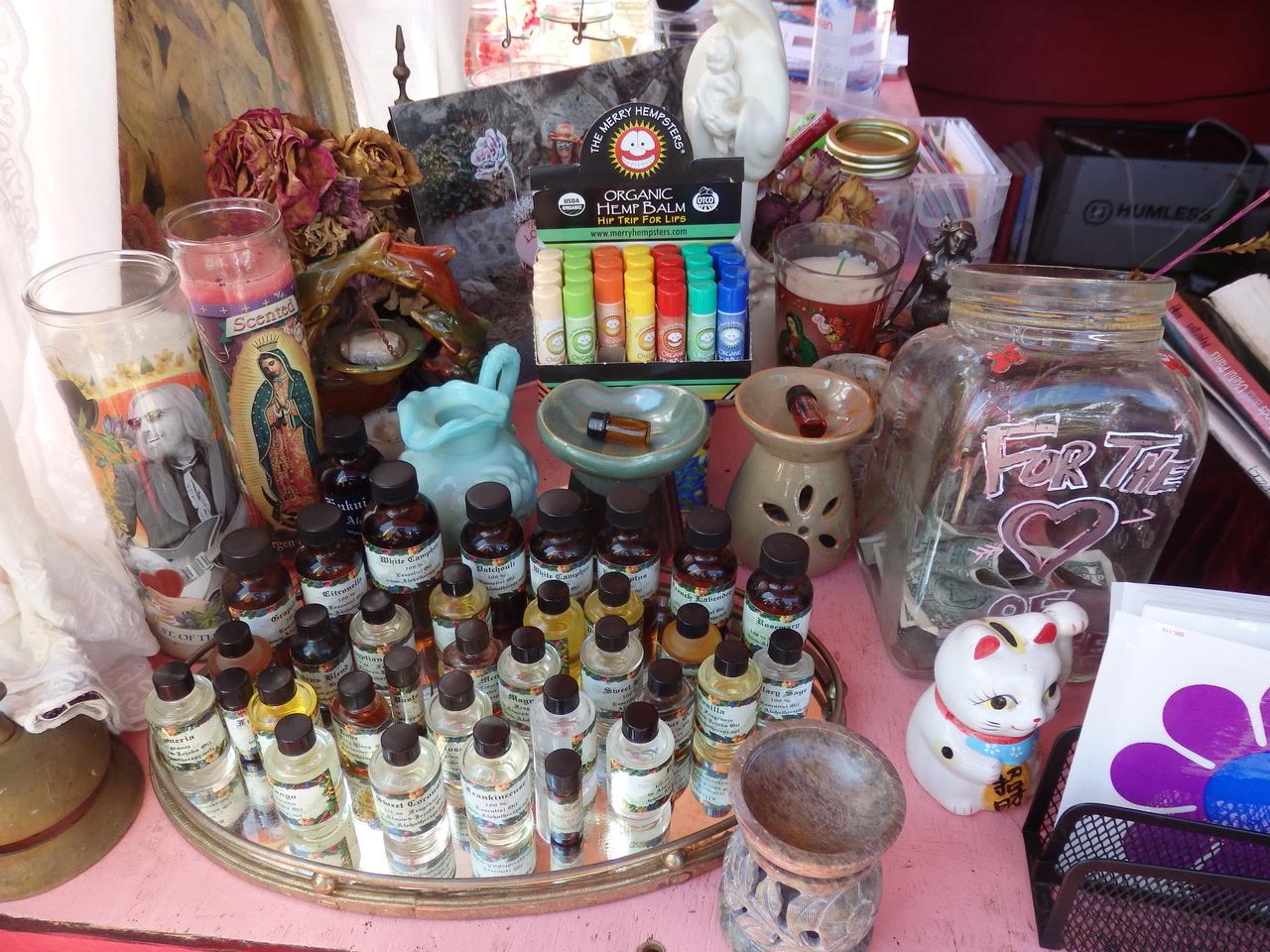“I also sell seeds, flower seeds, and vegetables, and wonderful smoking blends such as Loosey Lu’s Herbal,” Gidget said, while arranging flowers. “I have tea pots along with tea blends, vintage tea sets. I also have other knick-knacks and really nice soapstone infusers for essential oils.”