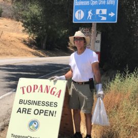 Recognizing the financial impact on local businesses, Susan Ng also acknowledged Roger Pugliese and Joseph Rosendo for advocating that “Topanga Town Open” language be included in all the signage. Ng also acknowledged Rosi Dagit for working countless hours (actually, 23 hours) providing guidance to Caltrans and the contractors, to ensure the repair wouldn’t impact plants and fish in the creek.