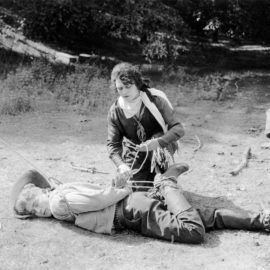 Gibson’s first featured role was in Ranch Girls on a Rampage (1912), in which cowgirls visit a Venice Amusement Park and become so rambunctious that they are chased out by the police. The film starred Ruth Roland, one year after she had filmed A Chance Shot (1911) at the Topanga Beach Native American burial ground.