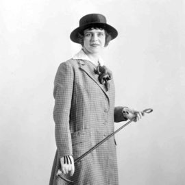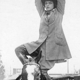 Born in Cleveland, Ohio, Gibson started out as a teenage rodeo performer who could pick up a handkerchief from the ground at full gallop. She came to Venice with the Miller-Arlington Wild West Show and found herself looking for winter employment at the end of the 1911 season. Fortunately, the entire show was hired by filmmaker Thomas Ince of the Inceville studio, located at the present-day intersection of Sunset and PCH. Helen rode her horse there from Venice every day to perform tricks in Ince’s Westerns, becoming the American film industry’s first professional stuntwoman.