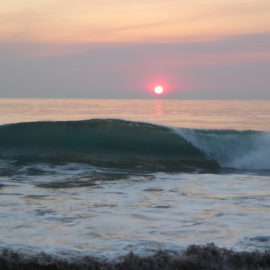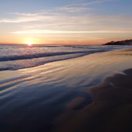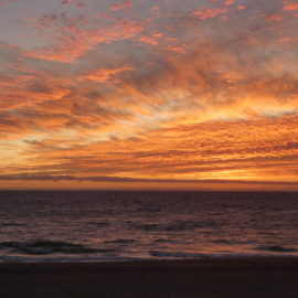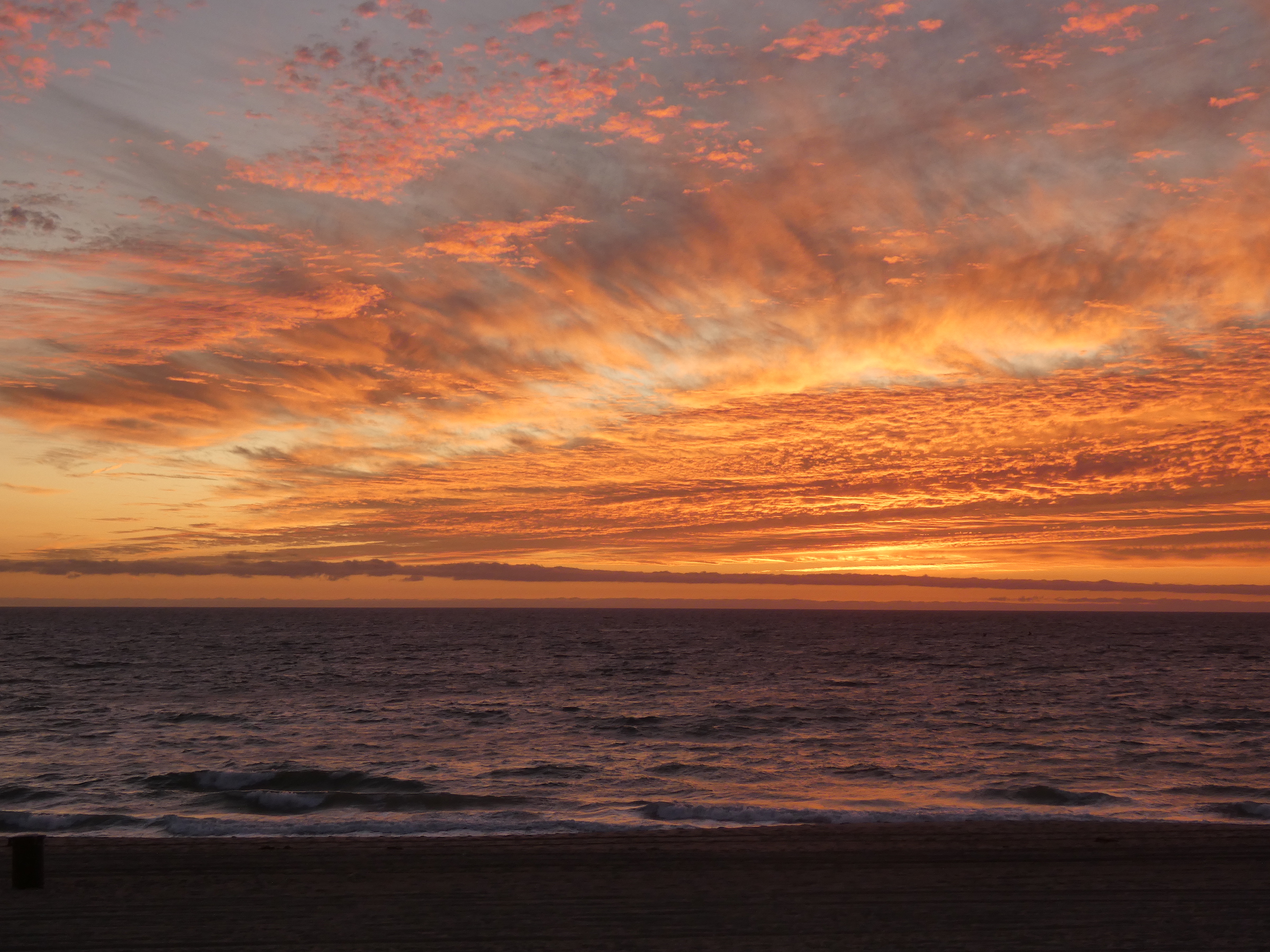 It’s easy to leave the crowd on the street or in the parking lot behind by simply opting to walk on the wet sand at the edge of the ocean instead of on the concrete. One often has the beach to oneself, especially after a storm, and stormy weather is a key ingredient in a good sunset. Ideal conditions include enough clouds to catch the light but not so many that the sun sinks out of sight into gray oblivion.