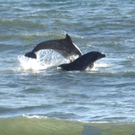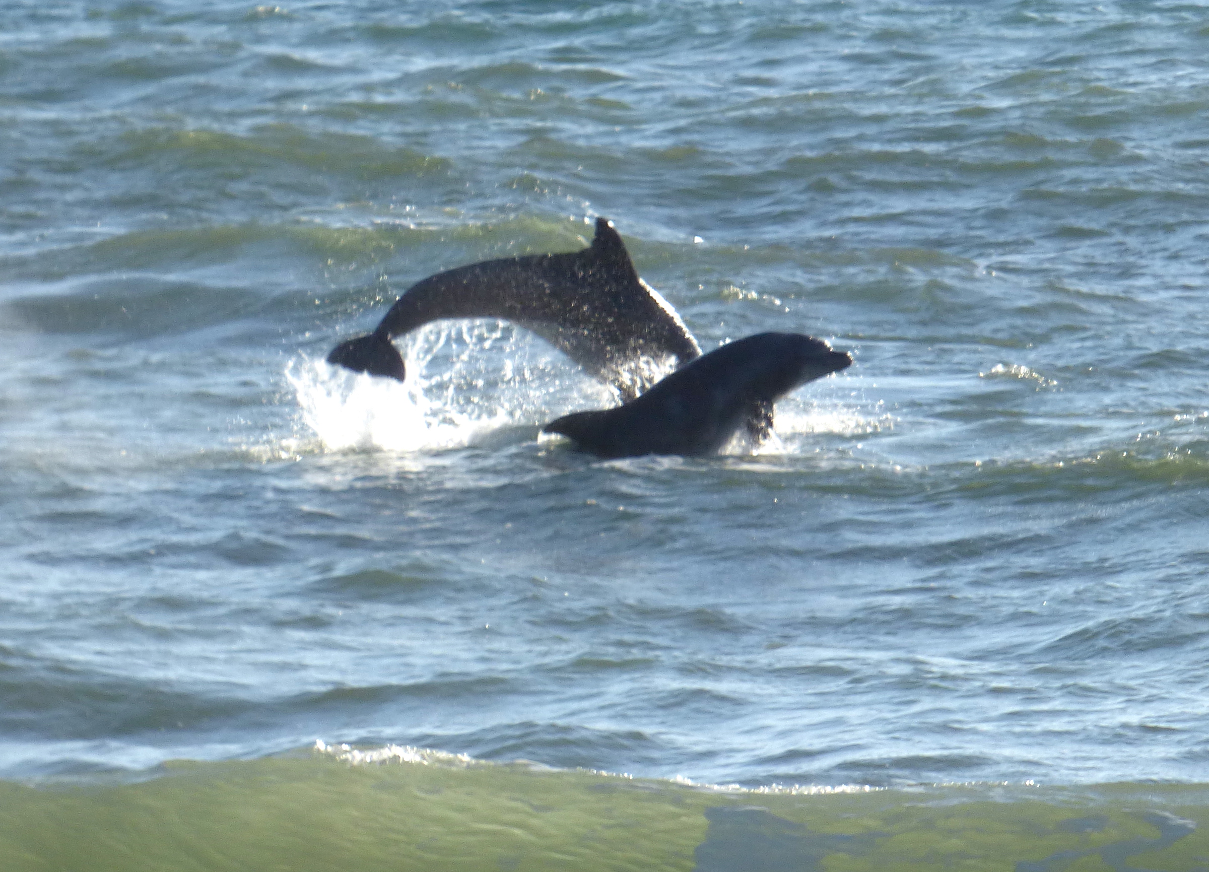 Common dolphins are year-round residents. They are often spotted playing in the surf at Zuma and Westward.