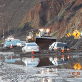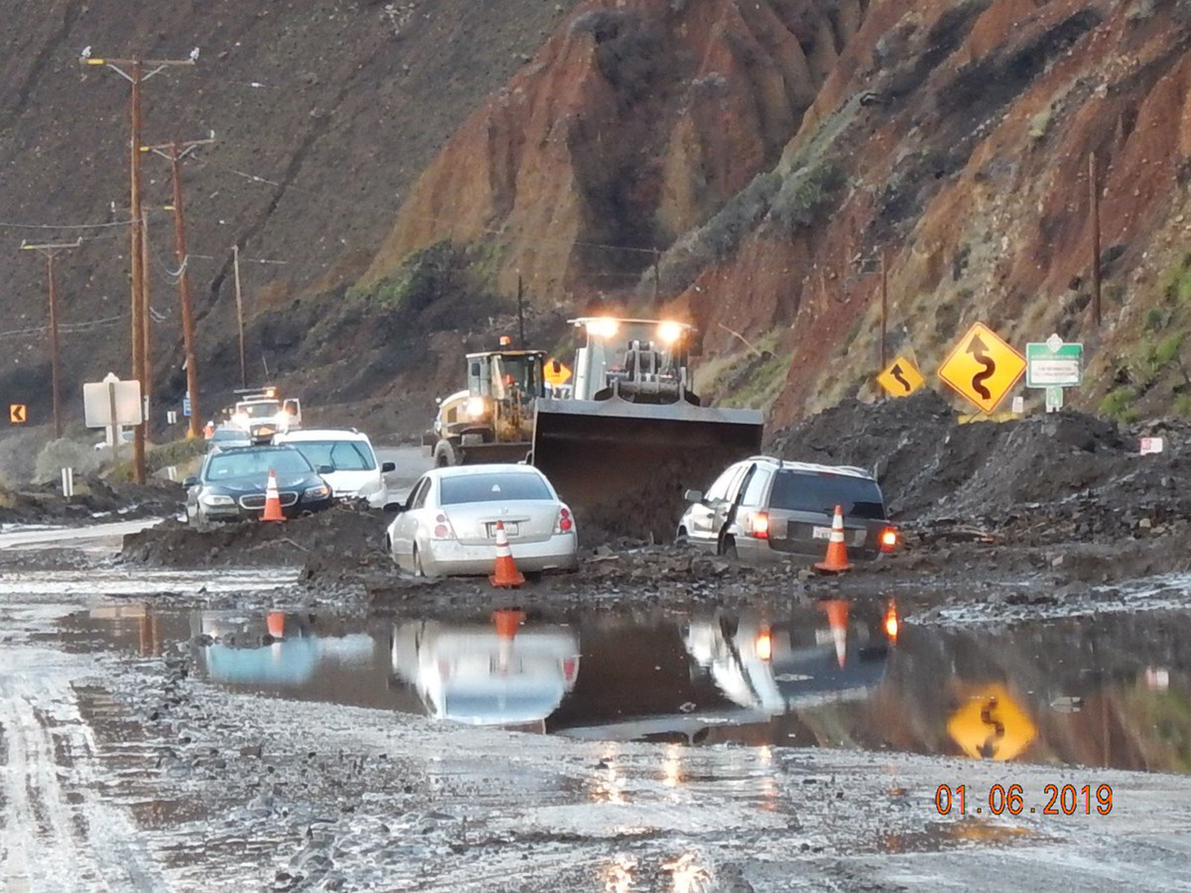 A fast-moving flood of mud and rocks near County Line in Malibu on the night of January 6 trapped several motorists in their vehicles, but no injuries were reported. Pacific Coast Highway was closed in both directions from Broad Beach Road in Malibu all the way to Las Posas Road in Ventura County while emergency crews worked to clear the 40-foot-wide debris flow and free the mired vehicles.