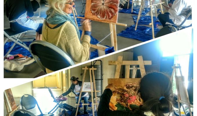 She later developed an appreciation for the more progressive work of painters, both American and European, in the modern abstract expressionist movement which she utilizes in her work creating an effect that is textured and sensitive to luminosity to predict various aspects of experiences in life with the primary use of mediums such as oil paint, roofing tar, roofing acrylic latex, watercolor, tea and common household mediums used in daily life. She currently resides in Topanga, CA, works throughout the United States and is available for international projects as needed.