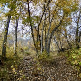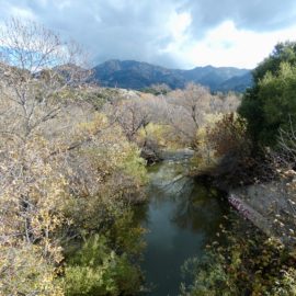 For a less traveled walk that also offers woodland autumn color, try heading for the campground, where a short trail segment leads through oak woodland into adjacent Tapia Park. From there, one can cross under Malibu Canyon Road at the bridge, with a grove of golden cottonwood trees as the destination.