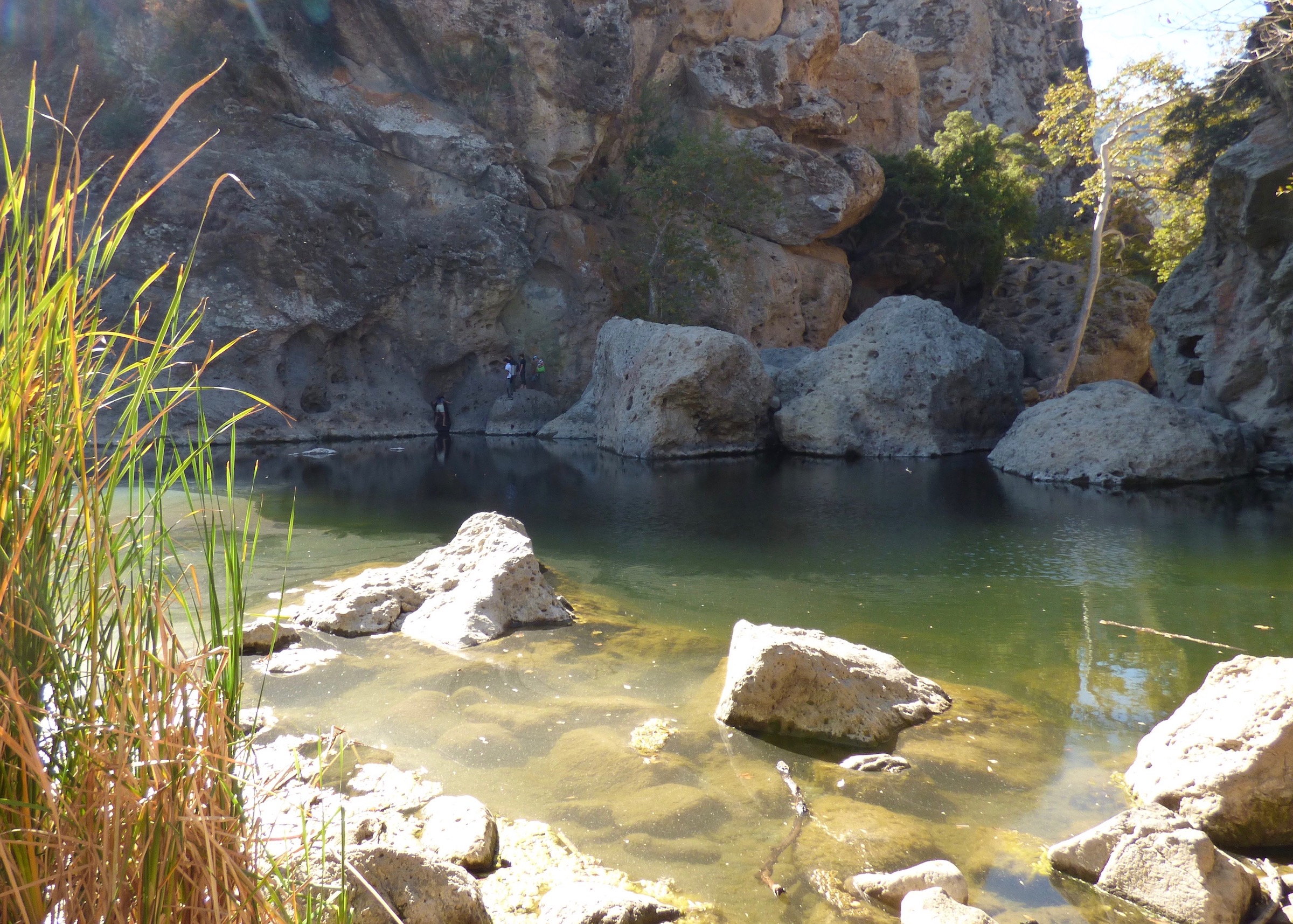 Rock Pool is the most popular destination in the park, for good reason. It’s an easy two-mile round trip walk with spectacular scenery, starting on the wide oak-lined section of Crags Road that crosses the valley floor, before narrowing into a cliff-lined gorge just past the bridge over the creek. Cross the bridge for spectacular views of the gorge and for a trip to the small but delightful visitor center, housed in the historic Hunt House, before continuing on to Rock Pool itself, below the dam at Century Lake in the shadow of the massive volcanic Goat Buttes.