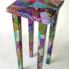 With a Master’s degree in the Study of Creativity, Melanie considers moxie and her irreverent nature the tools of her trade. Her work has gone through many iterations these last 27 years. For the past decade, she has worked mostly with poured paint. An “accident” stemming from a single paint spill in her workshop opened her up to the profound role of mistakes in the creative process.