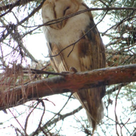 Barn owls and great horned owls mate and nest in late winter and early spring. It’s often more common to hear them on autumn and winter nights than it is in summer. Adult great horned owls communicate by hooting; the barn owl’s call is an unearthly shriek.