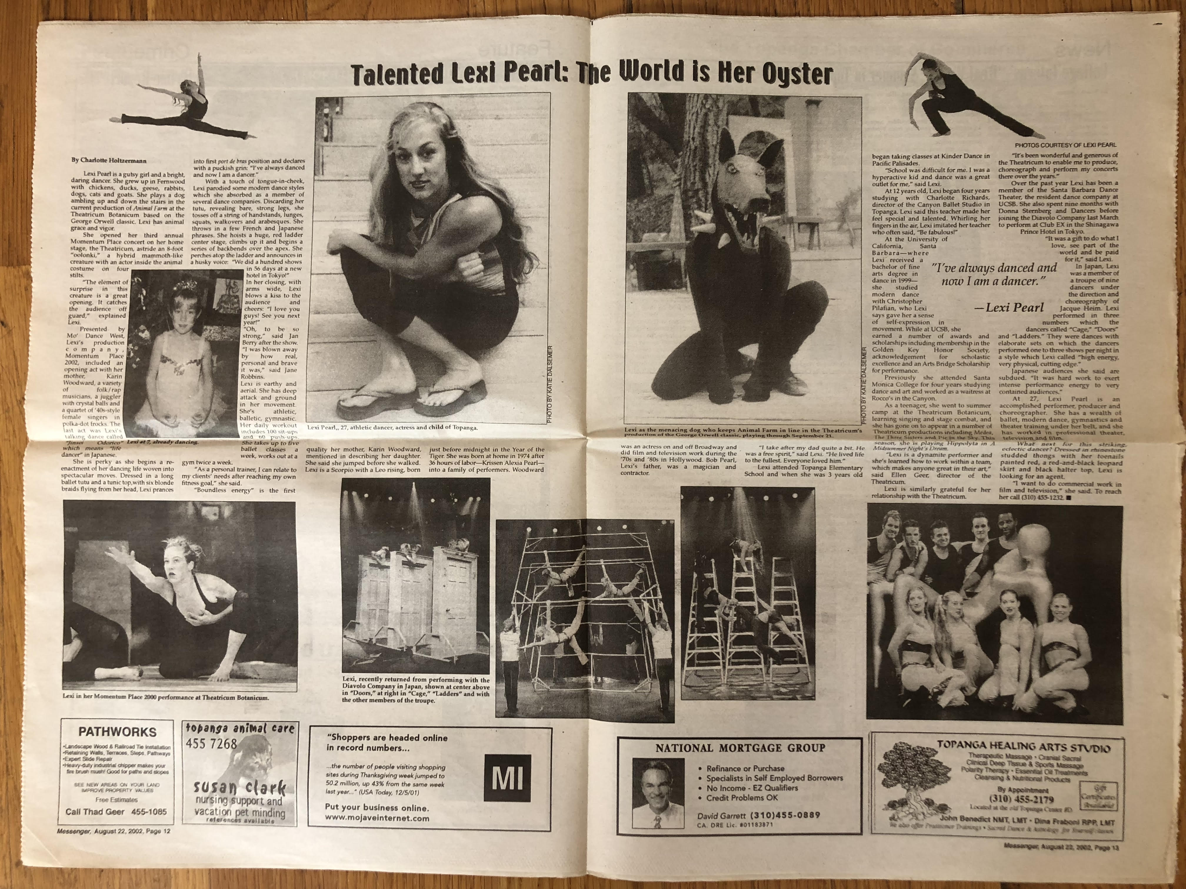 It was Pearl’s stepfather, Mark Scully, who suggested Pearl organize the first event at Theatricum featuring her fellow dance students at UCSB. “I was finishing up my senior year and we were all going to become professional dancers in the world. Then, he suggested, we could say we had performed in a theater on our resumes, so I started Momentum Place in 1998. There were nine of us in the company for that first show,” she said.