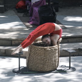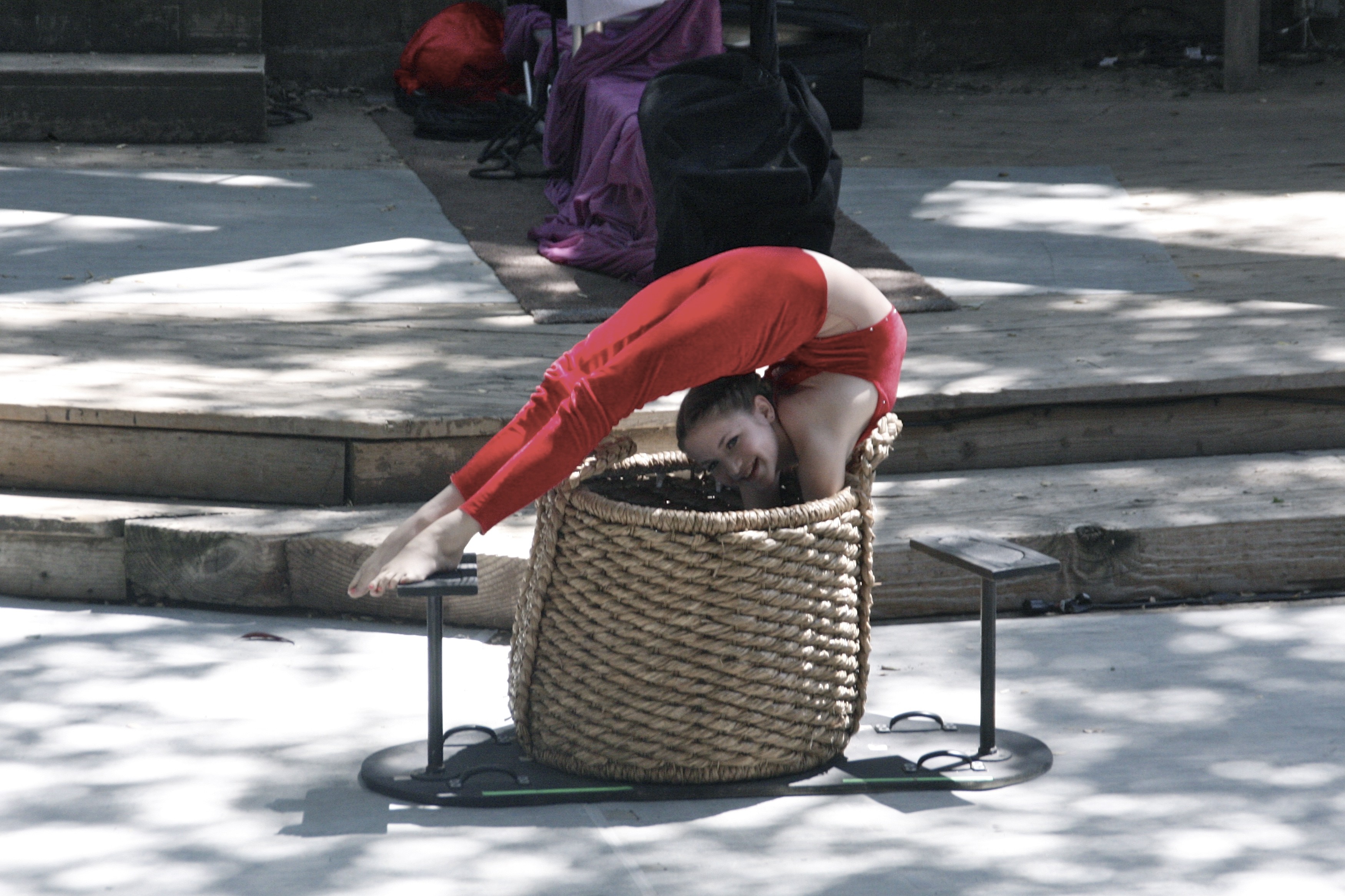 The show continued with 12-year-old contortionist Emerald Gordon Wulf—who slowly emerged from a basket, one foot, one hand at time, and bent and twisted her tiny body into unmanageable shapes—all while sporting a huge smile on her face!