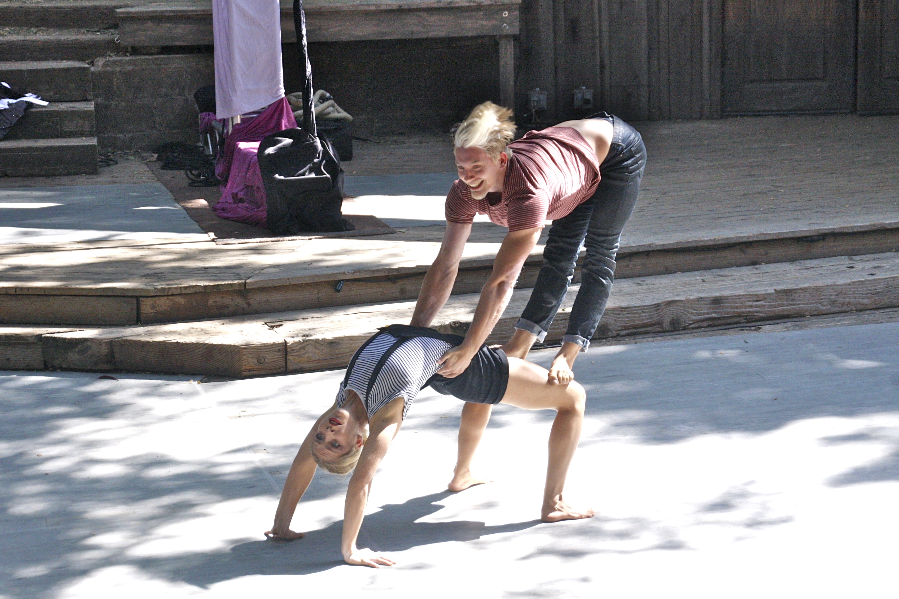 Megan Vaughan Giesbrecht and Axel Osborne, models of extreme balance and strength.