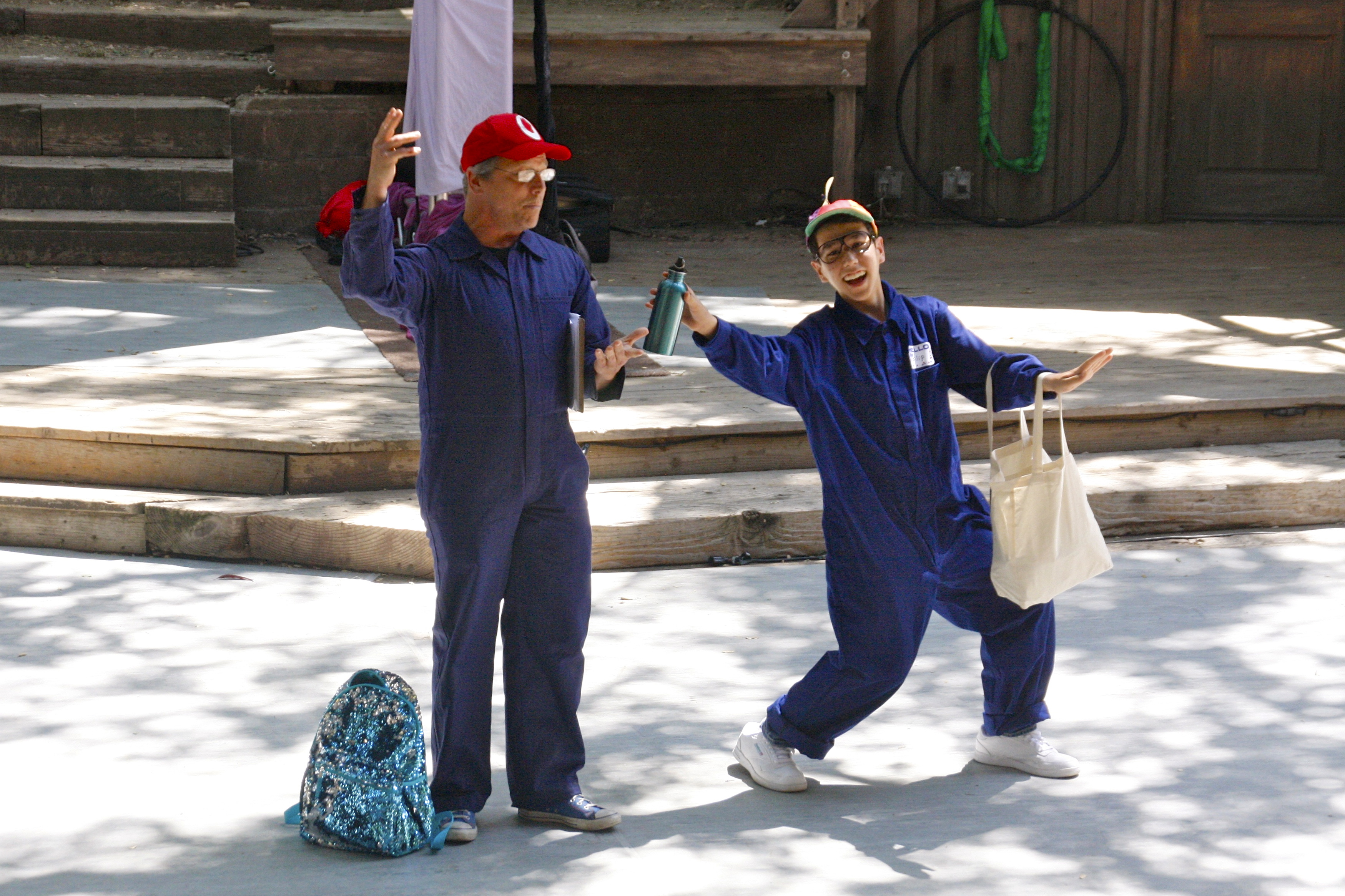 Zero Waste Manager Eric Newton (L) a talented aerialist in his own right, along with along with his trusty sidekick Teo Lin-Bianco, talked about his passion for this year’s Zero Waste event, where everything would be reused, recycled, or composted.