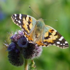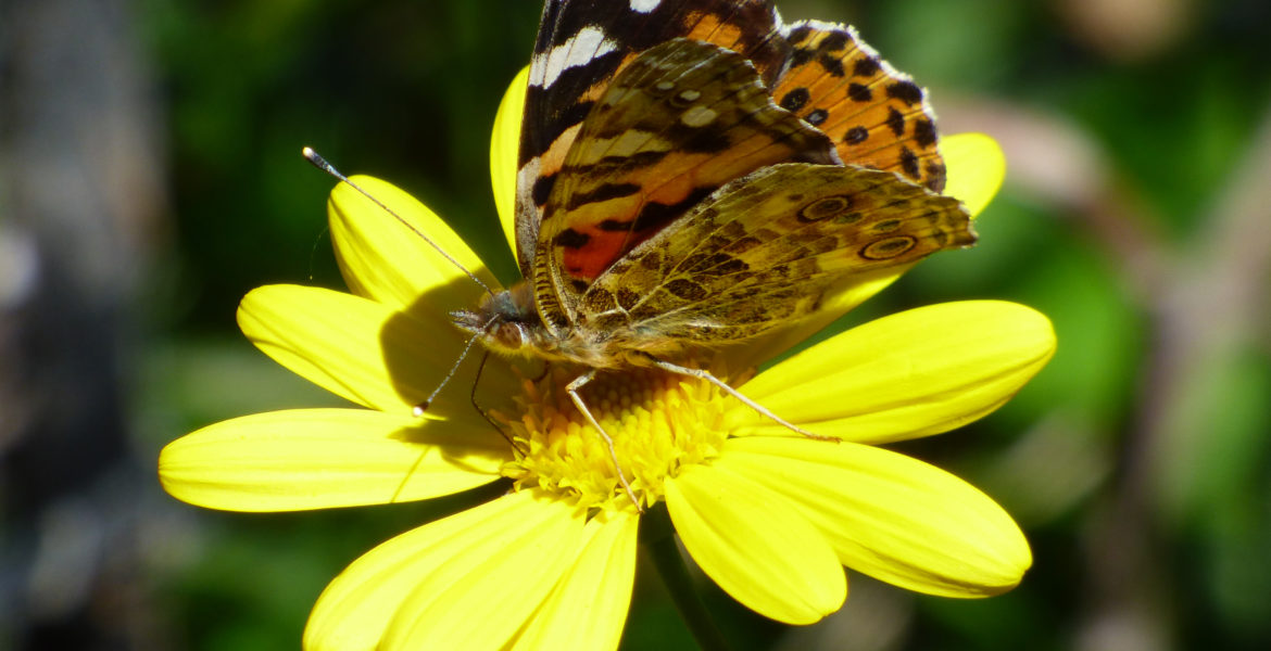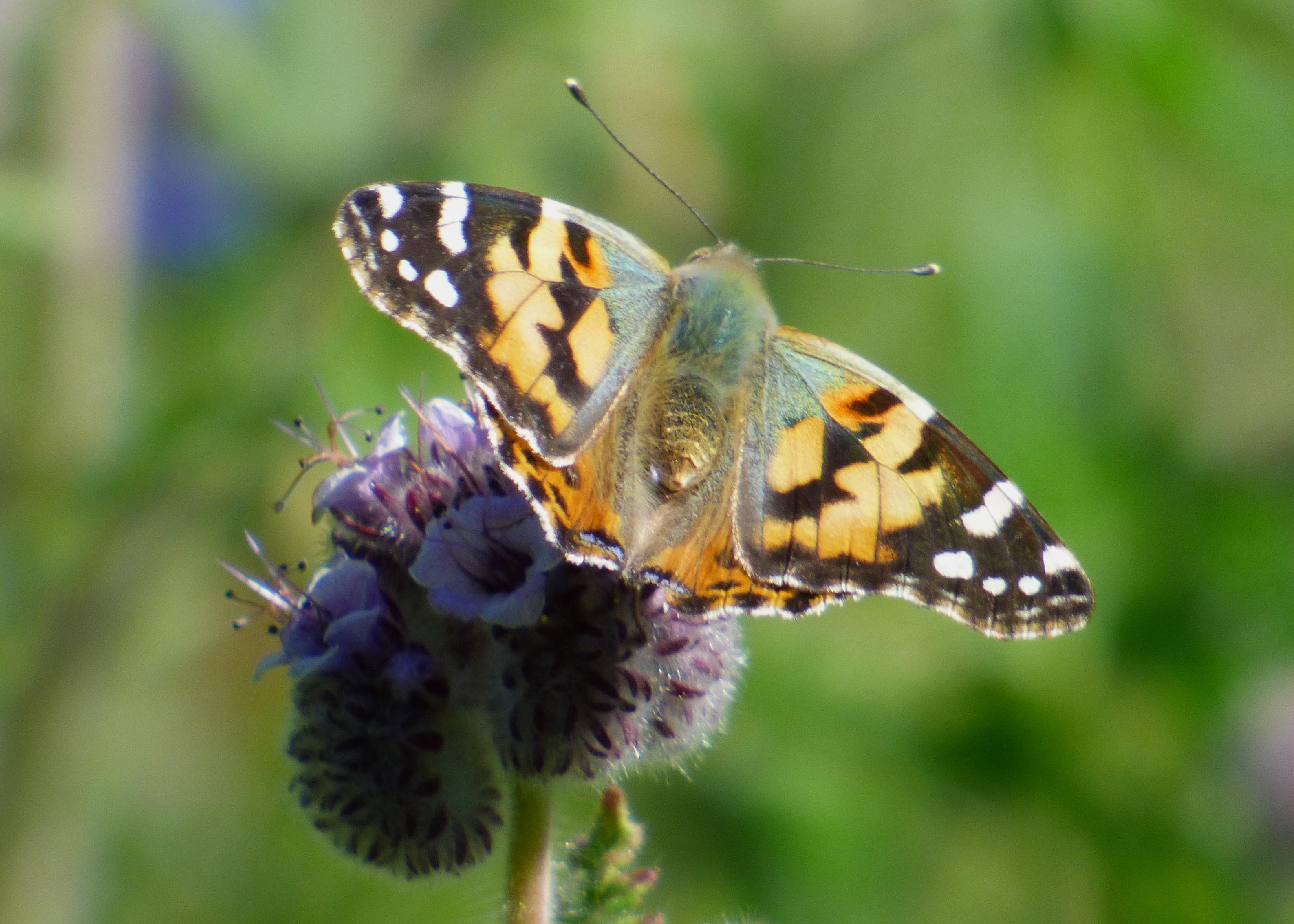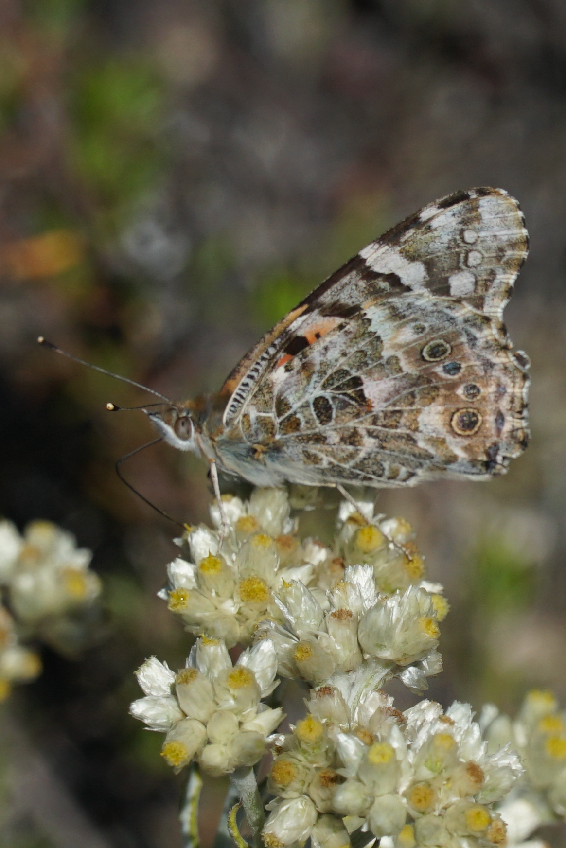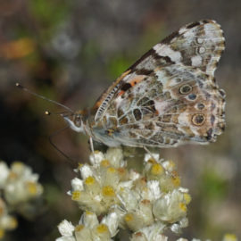 This painted lady is perched on cudweed, it's caterpillar host plant. Photo by Ken Ungrodt