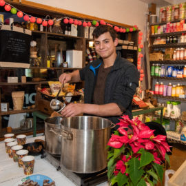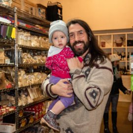 “What do you think,” asked a spirited Nathan Daneshgar, owner of Pine Tree Circle. This was his first solo event at Snow Day; last year, Leslie and Steve Carlson were showing him the ropes. “It was nice to see everyone,” said Nate. ”I’m fortunate to be part of this community filled with such unique, sensitive, and strong human beings.” This year, accompanied by his sister, Claudia, he was enjoying every bit of it. Even the rain.