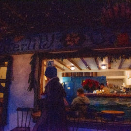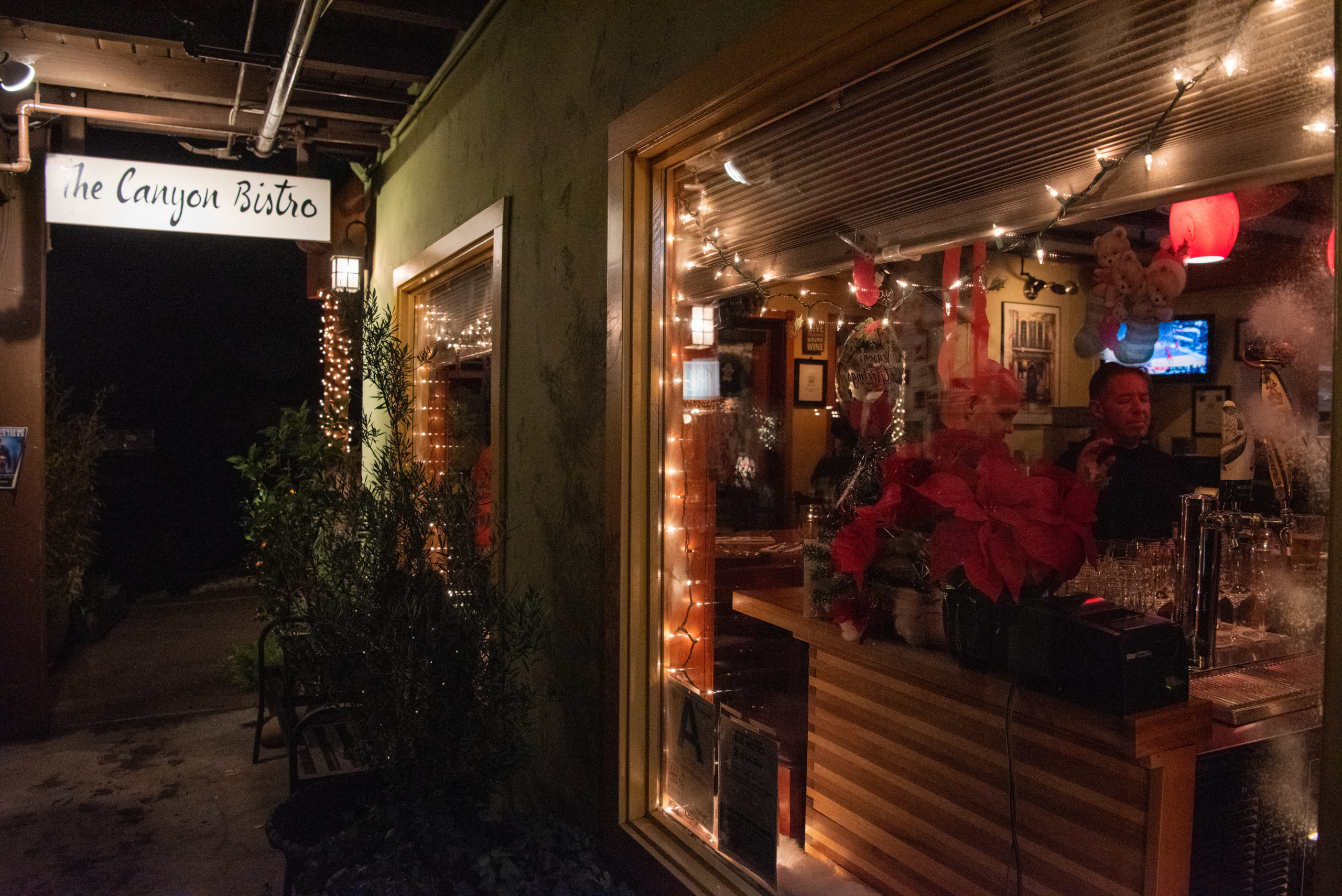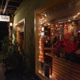 The shops were a-light with holiday cheer. Kaien Orion served up hot cider at the Canyon Gourmet, while Larry Cohn’s Bistro at the other end of the mini mall, welcomed revelers in from the cold. In the middle, Topanga Canyon Gallery showed off their member-artists’ works at their best, while visitors marveled at the art and architecture displays at Boutique Homes & Marketplace. Topanga Rocks’ majestic crystals seemed to glow brighter, and last-minute shoppers lingered in the holiday ambiance of Topanga Homegrown. Stocking-stuffers and small gifts in hand, they seemed to be arguing whether to buy something for themselves, unable to resist that one-of-a-kind outfit that would be perfect for Christmas Day or New Year’s Eve.