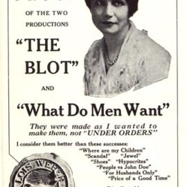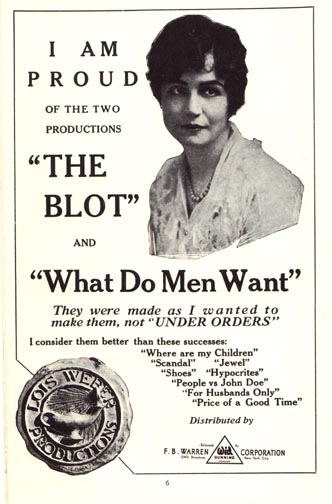 Lois Weber was an actress, screenwriter, director and one of the most prolific film producers of the 1920s. In this poster for two of her films, she advertises that she makes her films the way she wants to, not “under orders,” which is more than most filmmakers in the corporate climate of the current film industry today, can say for themselves. Image: Wid's Yearbook 1921-1922