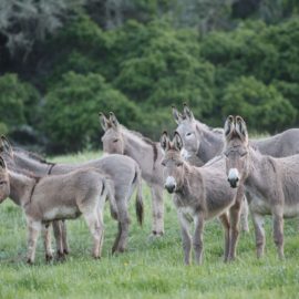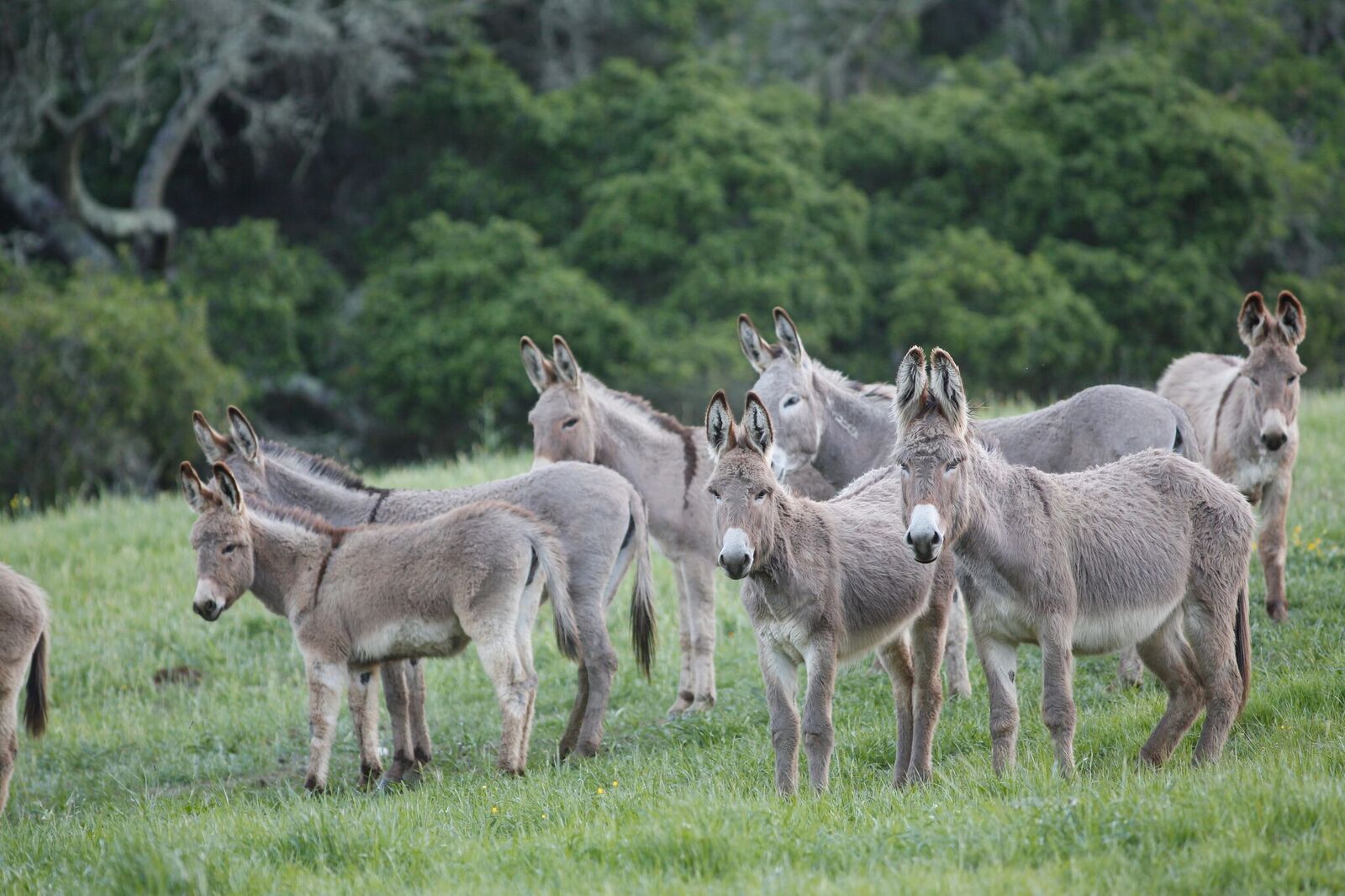 Leslie picks up the thread. “Since then, we’ve added 16 burros and 25 more horses from other herds. They live happily on the 1,000 acres of rolling grassland. That’s all they eat. We have great grasses that pretty much last all year round because they are not overstocked. Last fall, before the rains, their feed was supplemented for almost two months.”