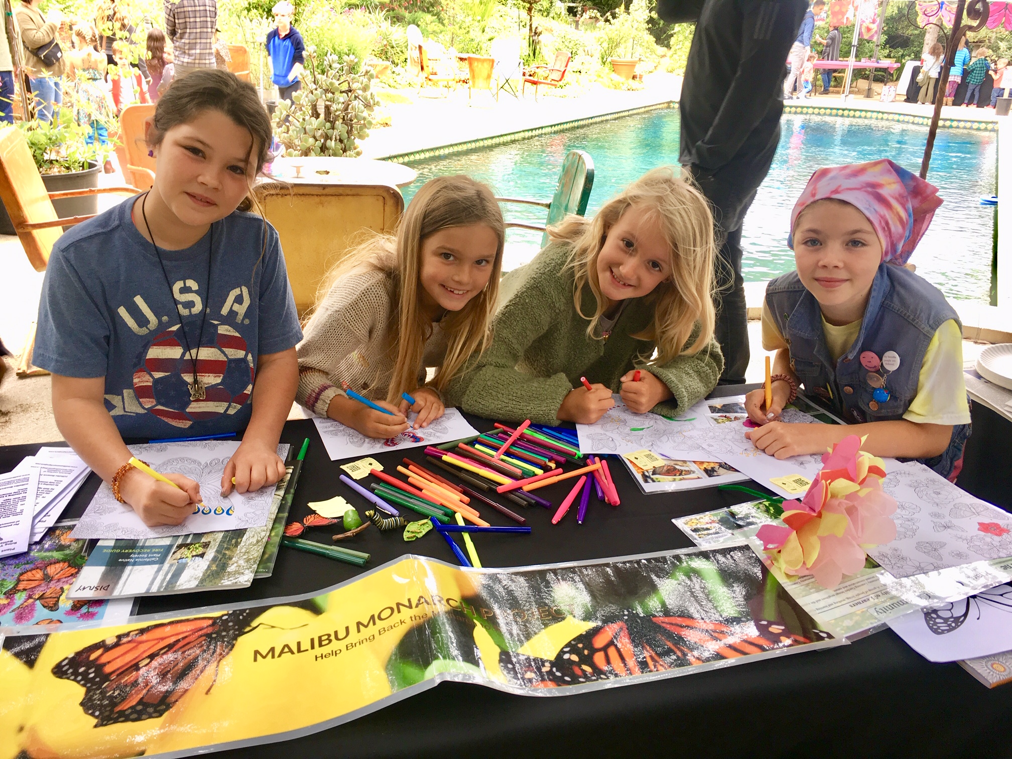 This outreach satisfies two goals: Raising awareness of the important role played by pollinators in our environment; Forging and strengthening relationships between Topanga school children and the broader community by bringing people together around themes that resonate in the canyon. This year we enjoyed robust participation with 500 visitors to Buerge’s beautiful home and gardens, a National Wildlife Federation (NWF) Certified Butterfly Habitat for migrating butterflies and dozens of butterfly-supportive native plants.