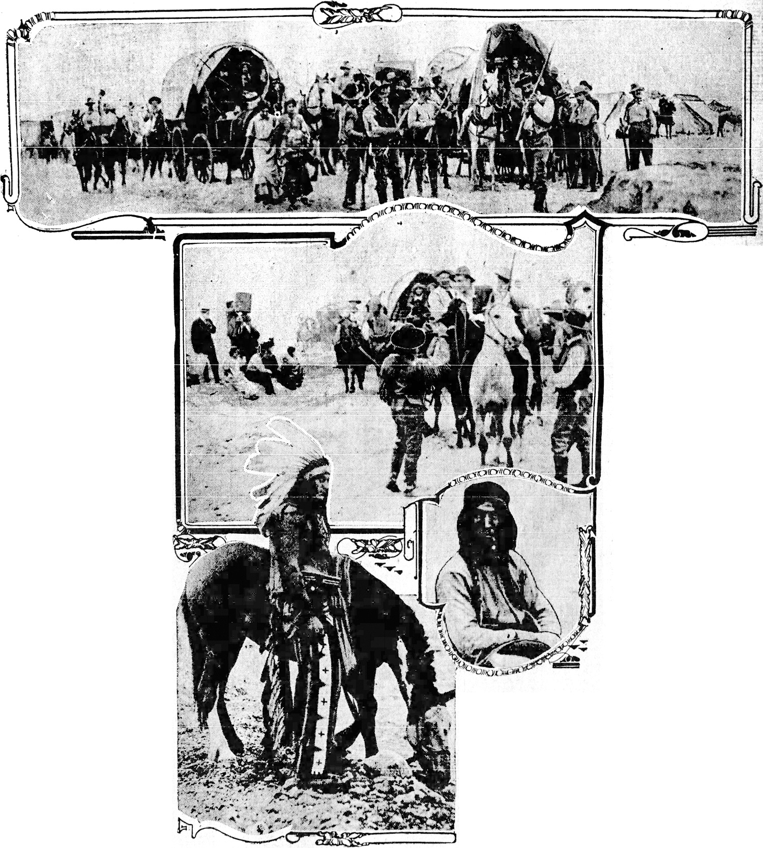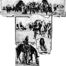 Griffith used 200 cowboys from nearby ranches, 50 women and children, 120 horses, and 11 prairie schooners for his 15-minute, single-reel film, Crossing the American Prairies in the Early Fifties. One reporter observed, “The camp of the players resembles that of a large circus. There are two big tents of perhaps 500 capacity…,