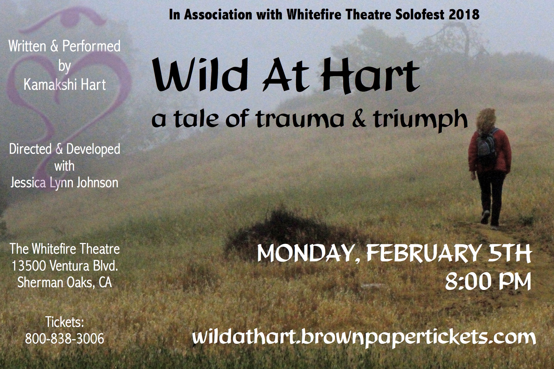 On Monday, February 5, at 8 p.m., Hart’s Solo Show, Wild at Hart: A Tale of Trauma and Triumph, in Association with The Whitefire Theatre’s Solofest 2018, will premiere at the Whitefire Theater in Sherman Oaks followed by a Q&A discussion and reception. It is written and performed by Hart, directed by and developed with Jessica Lynn Johnson. Hart has also registered the show with the Hollywood Fringe Festival in June.