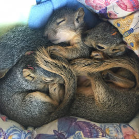 “We encourage putting squirrels back in the nest if possible,” Brent said. “Or putting them in a secure box high enough up the tree so the parents can come and get them. It’s best for any animal to be with its parent.”