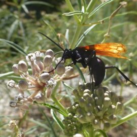 Although there are numerous native wasp and bee species equipped to sting, including mud daubers, paper wasps, carpenter bees, ichneumon wasps and even the red and furry velvet ant (really a flightless wasp), most are non-aggressive if left alone. Even the tarantula hawk, which has the distinction of having one of the most painful stings in the wasp family, rarely stings unless it accidentally comes into direct contact with a human.