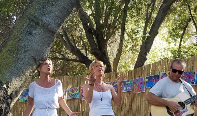 Thirty to 40 people braved the fierce 110-degree temperatures on Sunday, June 25, to support Cousin Kate and the Lesbian and Gay Psychotherapy Association in the second concert and first fundraiser held at the newly-opened SunMoon Retreat Center on Cheney Drive. The event was one of several throughout 2017 to mark the 25th anniversary of LAGPA, an LA-based organization for LGBT psychotherapists and allies that serves the gay community.