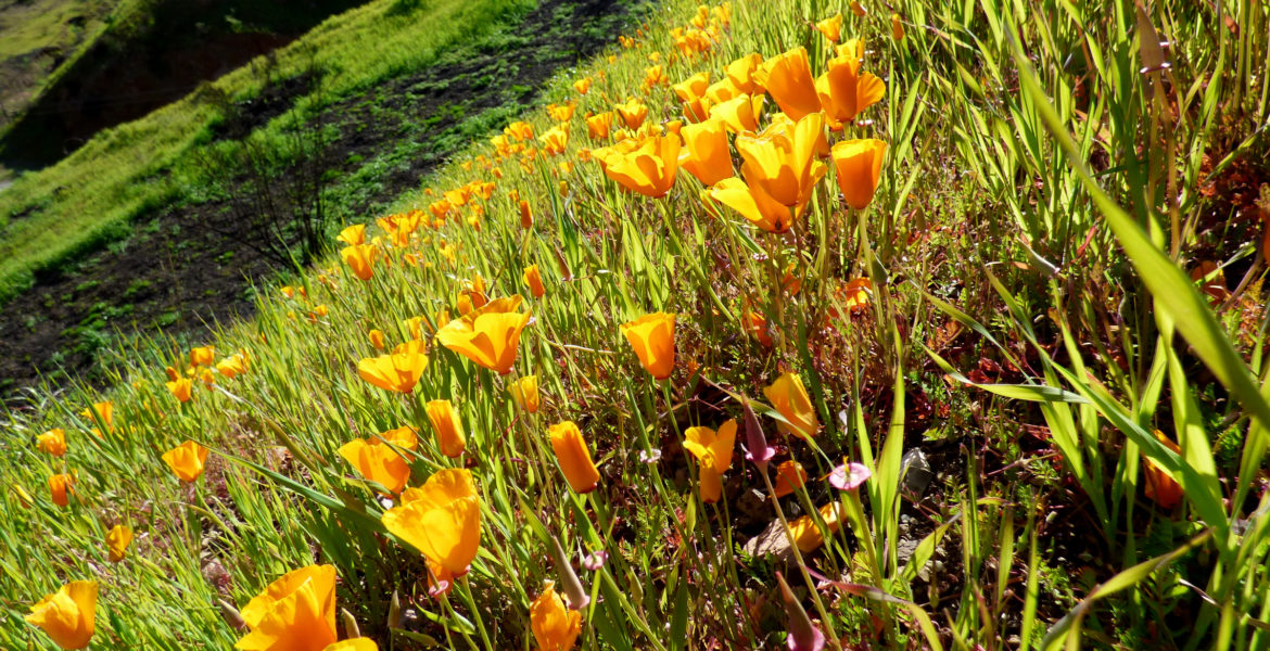 Chocolate lilies (Fritillaria biflora) are also beginning to bloom throughout the Santa Monica Mountains. This increasingly rare flower grows from a bulb and is usually one of the earliest wildflowers. It’s rare to find more than a few plants, and it isn’t showy, but this is arguably one of the most loved California native wildflowers. Photos by Suzanne Guldimann