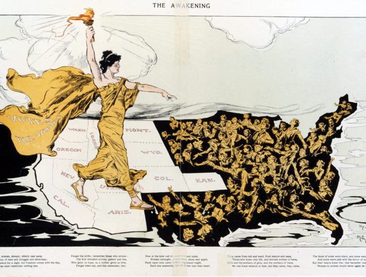 Above, the cover of a 1911 Suffragist Pamphlet celebrating the passage of California’s Proposition 4…
