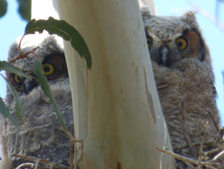 These young great horned owls aren’t old enough to fly but they are big enough…