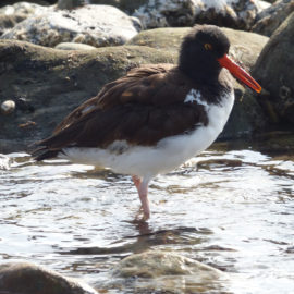 American oystercatchers are more common south of Baja, but this one turned up in the tide pools at Topanga State Beach. Winter often brings unusual migrant species to the coast, as well as seasonal residents that may travel from as far away as the Arctic circle to winter here.